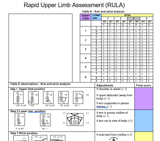 Each of these tools has a particular focus. For example, RULA and REBA target posture and repetitive strain, while NIOSH is used specifically for lifting tasks.