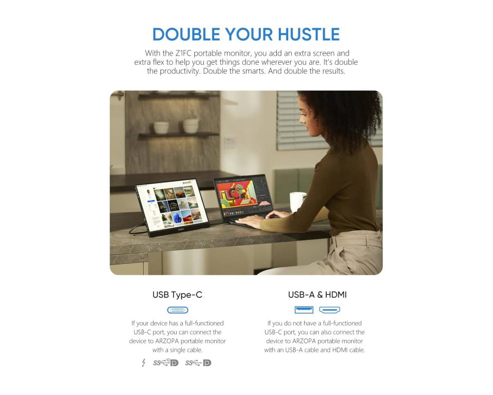 Experience vibrant visuals on the go with the ARZOPA Z1FC Portable Monitor. With a 144Hz refresh rate and 1080p resolution, it’s ideal for work, gaming, or study. Its compact, lightweight design makes it a reliable second screen wherever you are.
