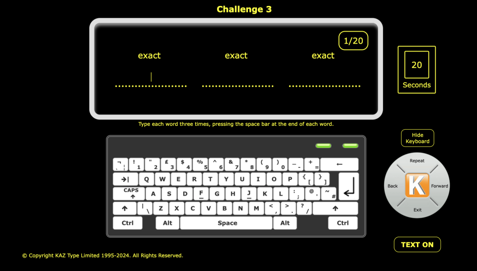 For individuals with dyspraxia or reduced fine motor control, typing can feel physically demanding. KAZ promotes correct finger positioning and repetition, building muscle memory gradually. By improving technique, users can reduce unnecessary strain and develop a smoother, more comfortable typing style over time.